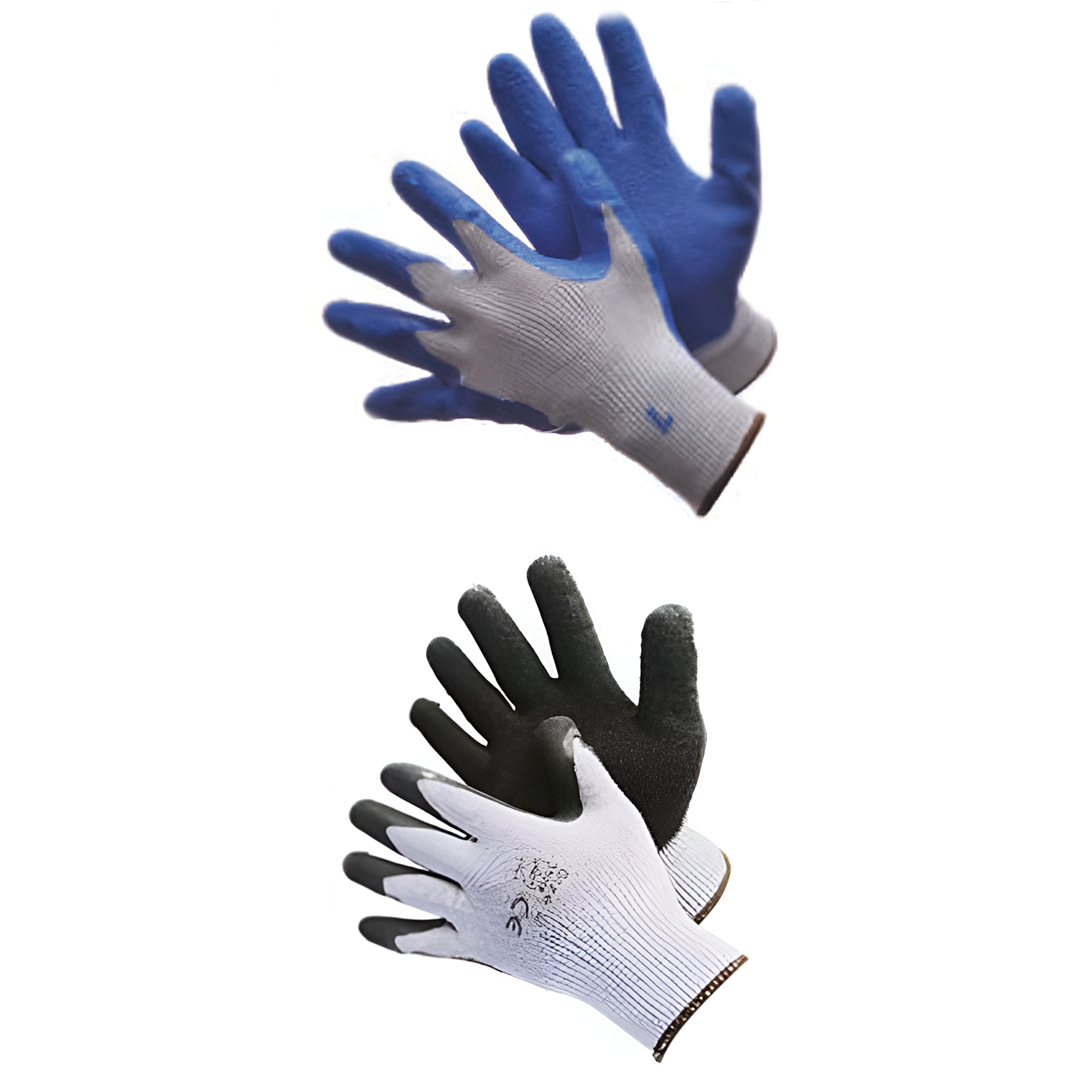 Our versatile 10 gauge gloves are designed for comfort and durability, featuring a gray cotton/polyester blend string knit construction. The knit wrist provides a secure fit, while the textured blue latex coated palm offers excellent grip and protection.